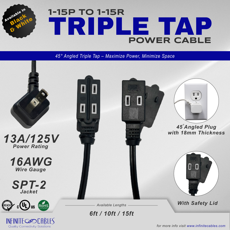 6 Outlet Power Strip - 45 Degree Angle 5-15P Plug - Black