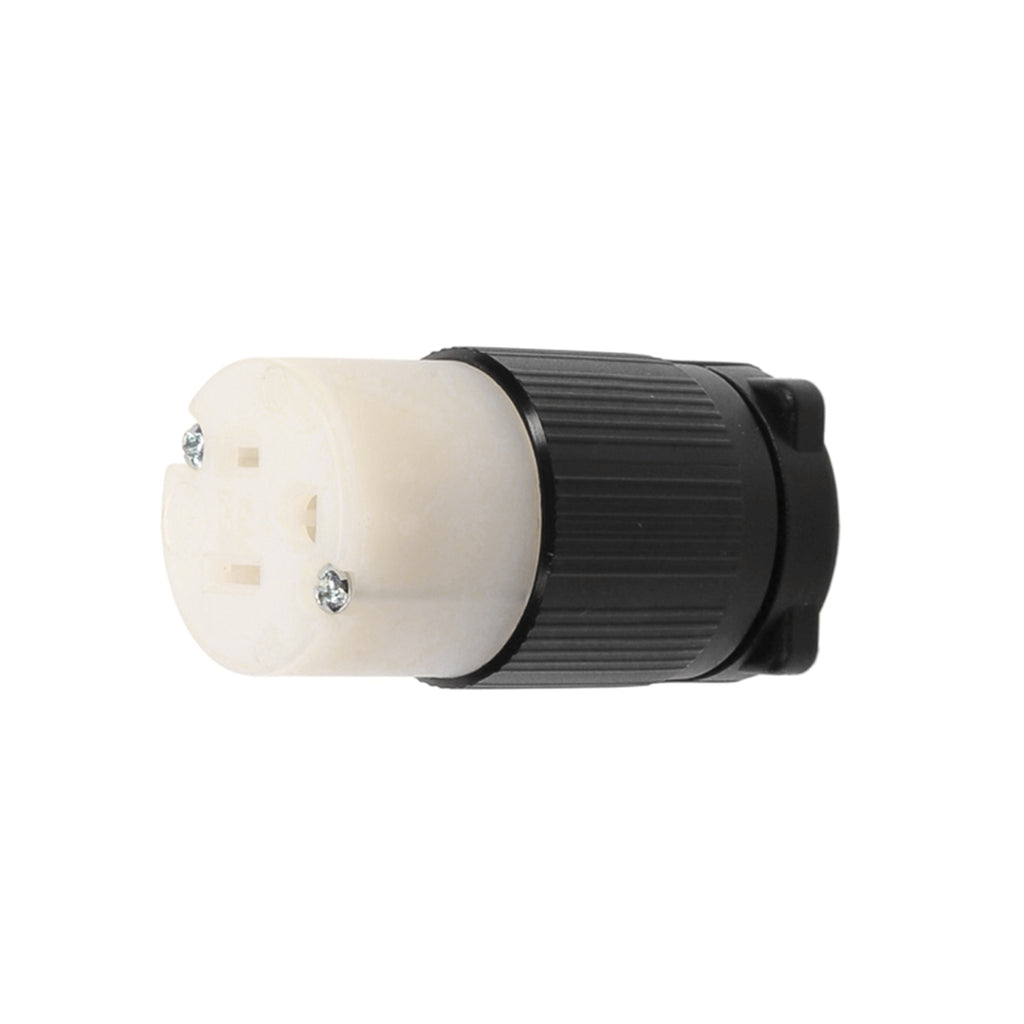This 5-15R power cord connector is a 2-pole 3-Wire grounding heavy-duty plug. The tough nylon body provides impact and chemical resistance. The powerful offsetting cord grip clamps on individual conductors and outer cord jacket prevents strain on the terminals.