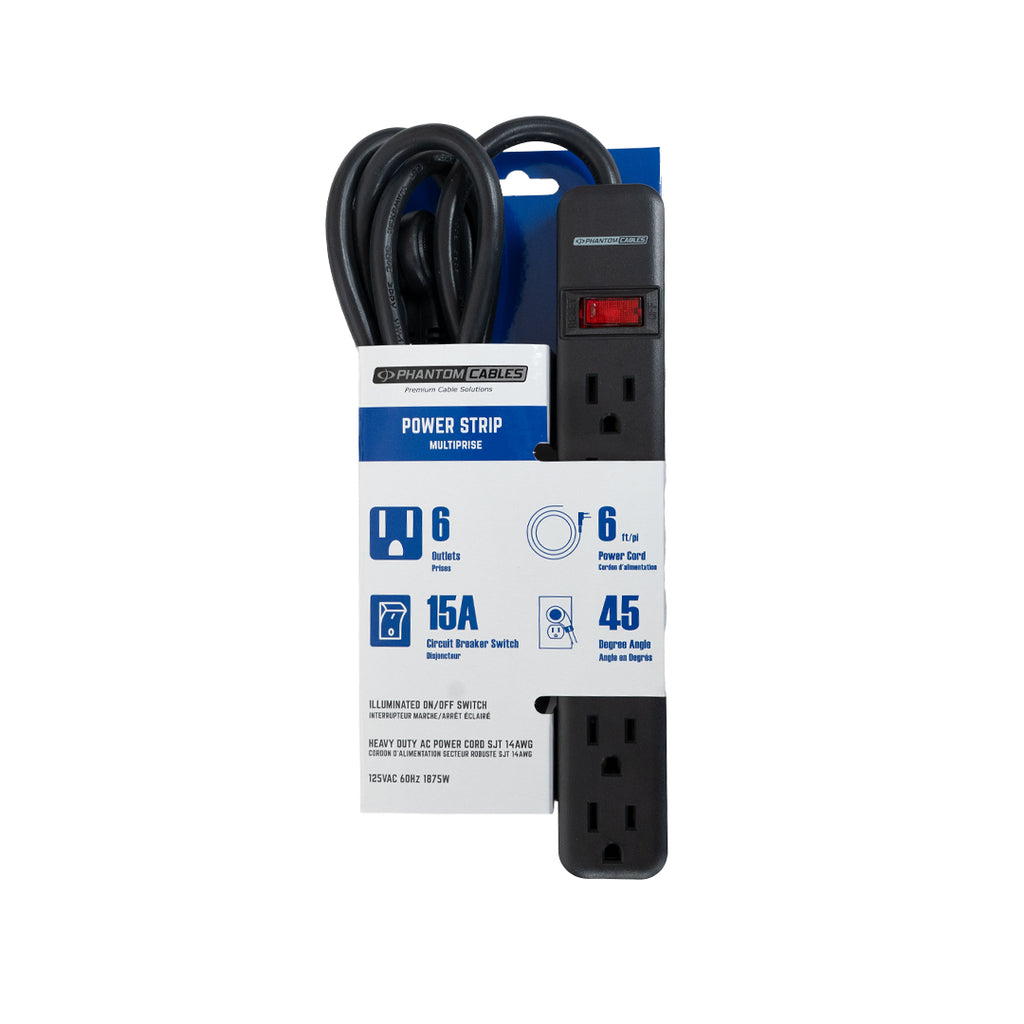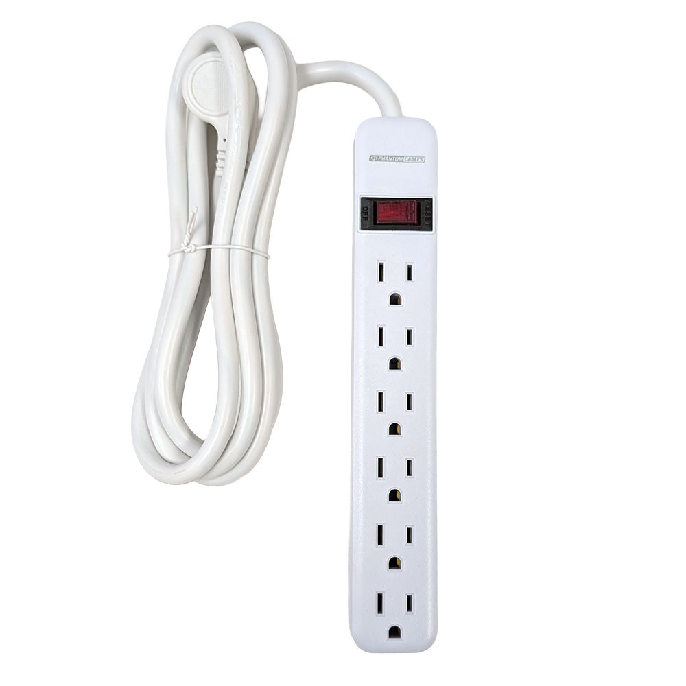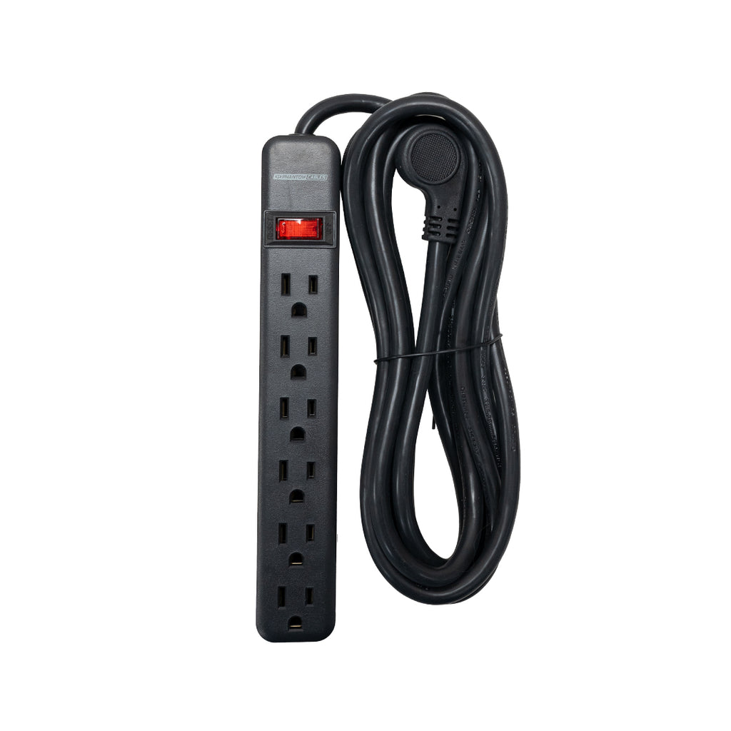 This 6 outlet power strip plugs into a standard power outlet, with the options of 3ft, 6ft or 10ft cord and a built-in circuit breaker to protect against overloads. This can be used with most small appliances.
