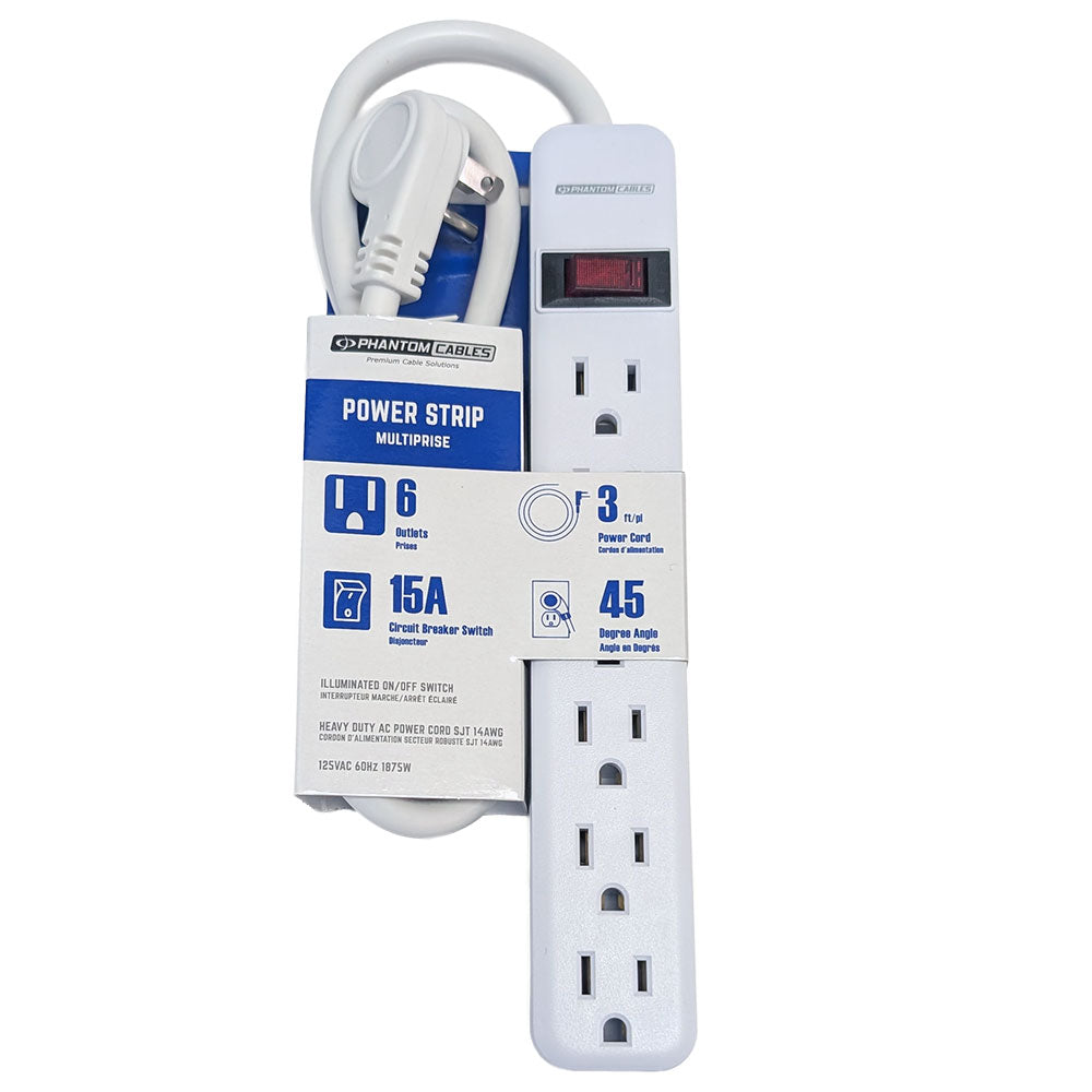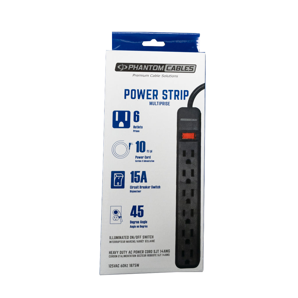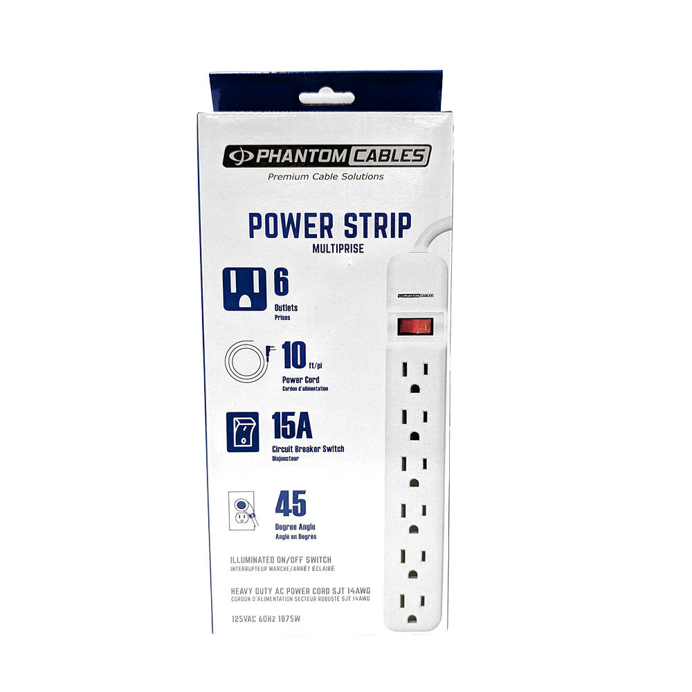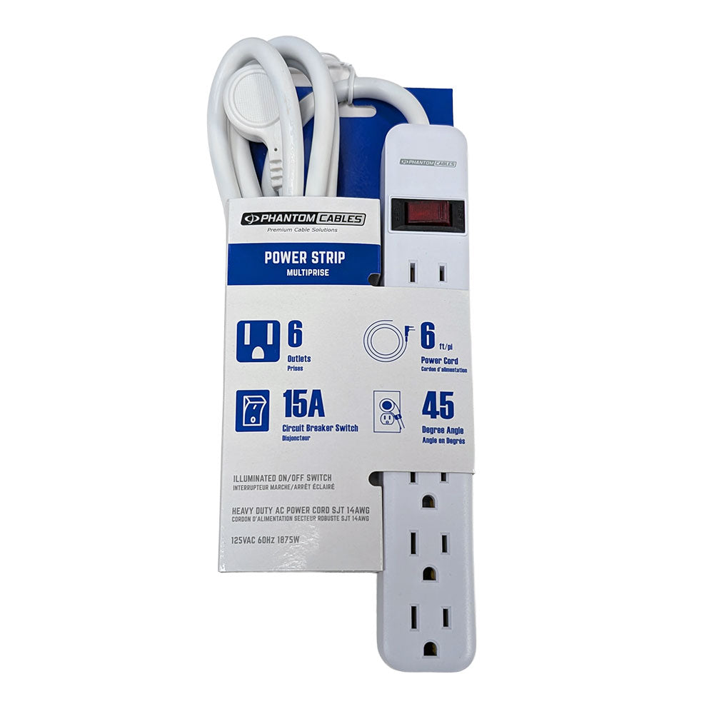 This 6 outlet power strip plugs into a standard power outlet, with the options of 3ft, 6ft or 10ft cord and a built-in circuit breaker to protect against overloads. This can be used with most small appliances.