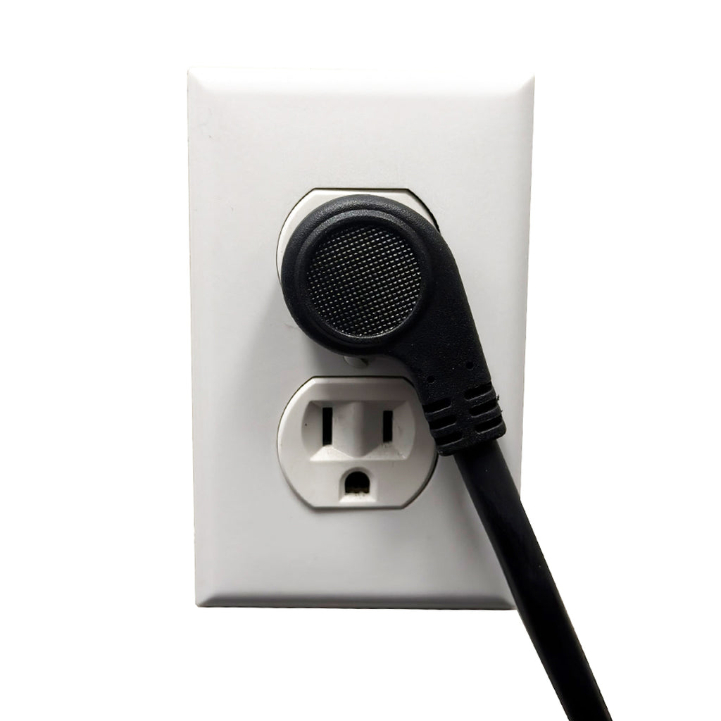 Maximize your wall space. The low-profile, 45-degree angle plug is specifically designed to fit into tight spaces and behind furniture without blocking the bottom receptacle of a standard wall outlet.