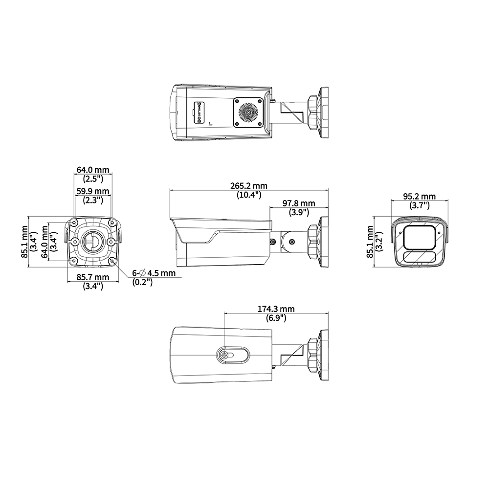 | DORI Distance | Lens: 2.8 to 12 mm Detect: 63.0 m to 270.0 m (206.7 ft. to 885.8 ft) Observe: 25.2 m to 108.0 m (82.7 ft. to 354.3 ft) Recognize: 12.6 m to 54.0 m (41.3 ft. to 177.2 ft) Identify: 6.3 m to 27.0 m (20.7 ft. to 88.6 ft) |