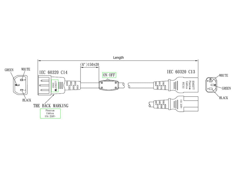 This power cord consists of a C14 male on one end and a C13 female on the other end, and has a built-in toggle switch to power a device on or off. These cables are constructed with UL mandated inner plastic frame molds to enhance terminal alignment and produce a high quality connector. Premium quality connectors are used to ensure a secure fit. Each assembly is 100% continuity tested and 100% HVT (High Voltage) tested and inspected before shipping.