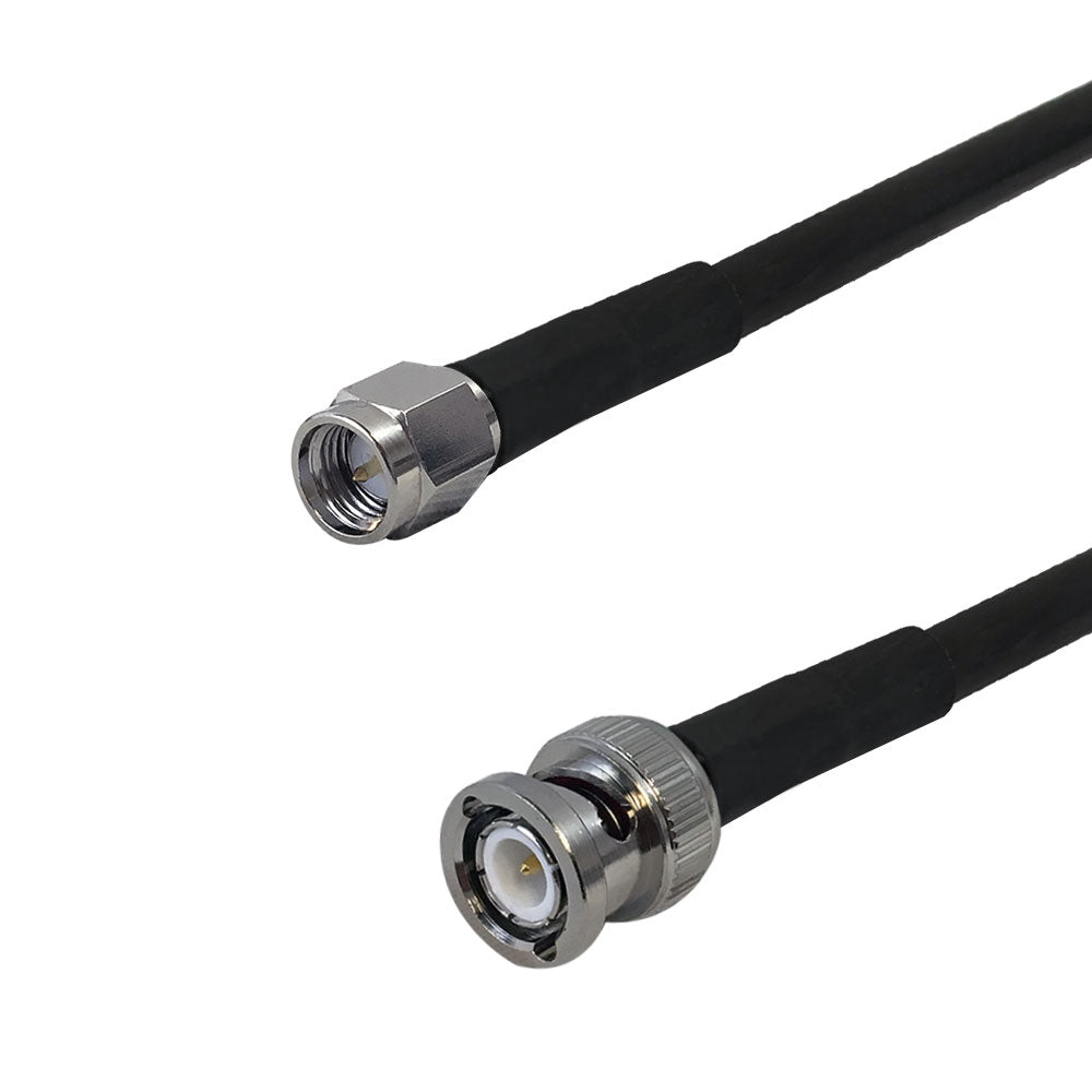 This Times Microwave LMR-240 antenna cable has a SMA male on one end and a BNC male on the other. It is typically used to connect RFID/GPS wireless infrastructures, such as wi-fi antennas, routers and access points.