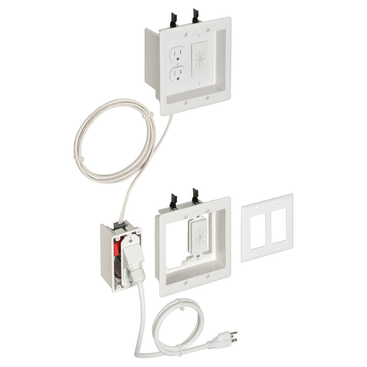 This power bridge kit consists of two double gang recessed boxes, two low voltage cable pass through openings and a pre-wired power outlet. It allows you to easily run power and low voltage cables to your wall mounted TV within the wall so that all cables are neatly concealed. The pre-wired power outlet meets all in-wall electrical standards and eliminates the need of tapping into an existing electrical outlet, cutting through framing members or hiring an electrician.